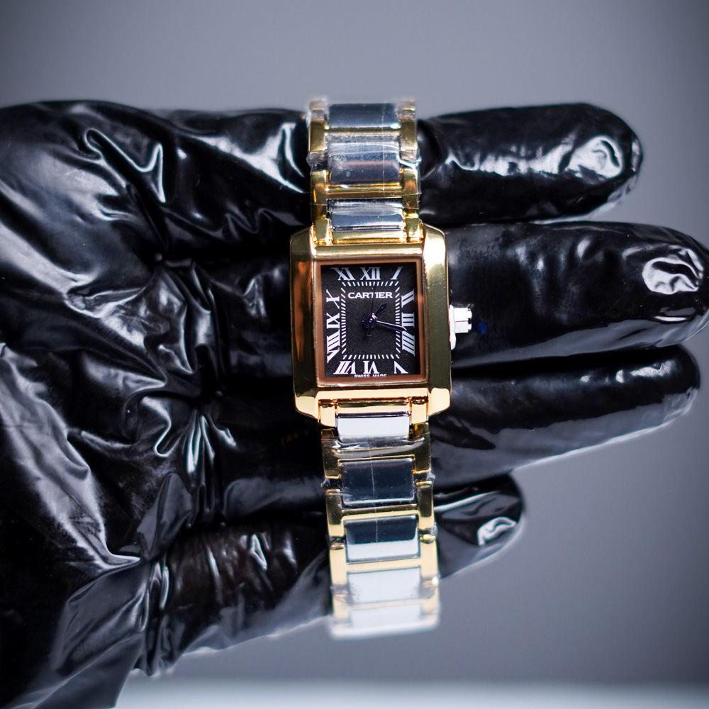 The striking black dial sets this model apart, offering a bold contrast to the classic Roman numeral hour markers and blued-steel sword hands, signature elements of Cartier’s design heritage. Compact in size at 20MM, it delivers a delicate and feminine presence on the wrist while maintaining the bold lines that define the Tank collection.